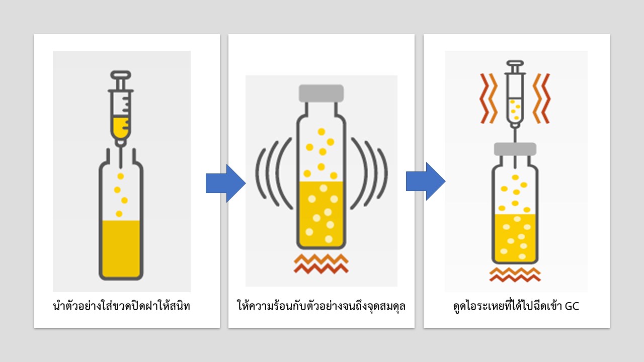 รูปแสดงขั้นตอนการสกัดตัวอย่างด้วยเทคนิคเฮดสเปซ